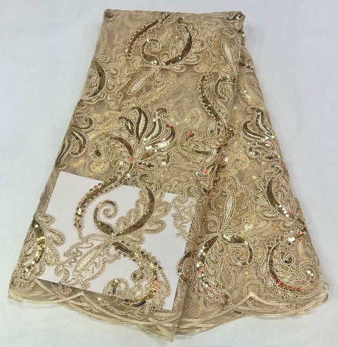 Champagne Gold Beaded Sequins French Lace - 5 Yards