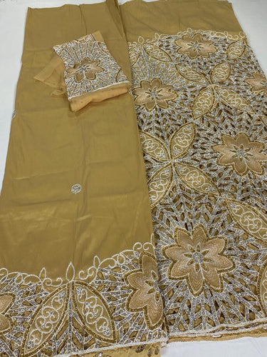 Champagne Gold Net George with Blouse Fabrics (3 Pieces)